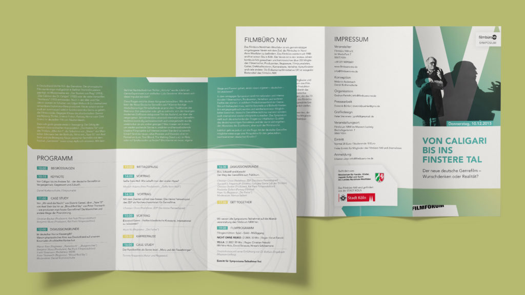 Filmbüro NW – Symposium Genrefilm KundeFilmbüro NWDatum2015 Werbe- und Verantstaltungsmaterial, Postkarten, Veranstaltungsflyer, Vitaheft Referenten Gestaltung und Produktion